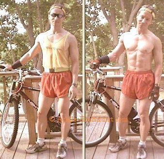 age July 44 pics show work-outs from April to July 2001,